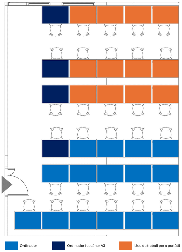 Per a més informació sobre l'accés i la disponibilitat de la sala, podeu consultar el servei corresponent de la Sala d'Informàtica.